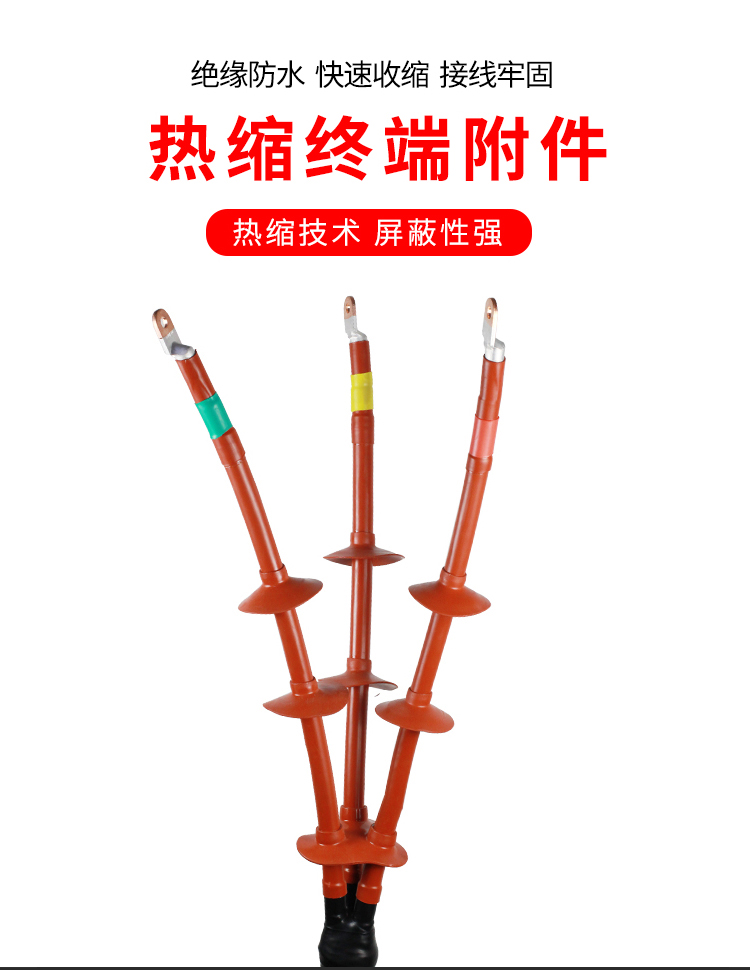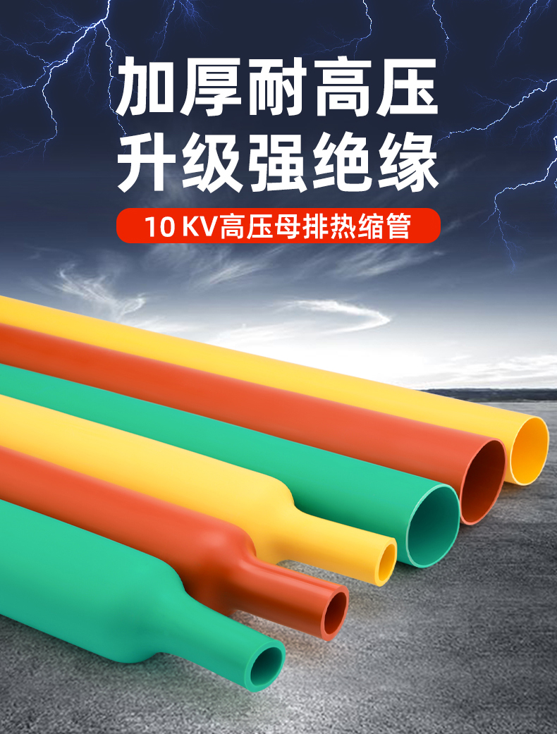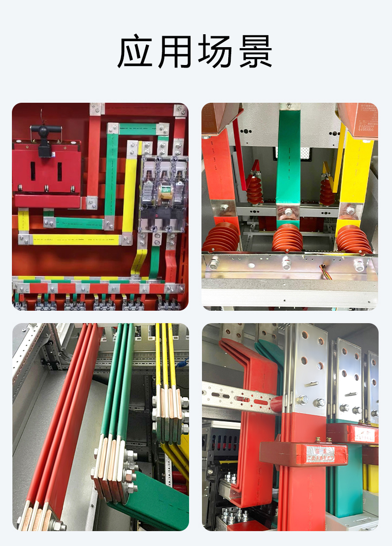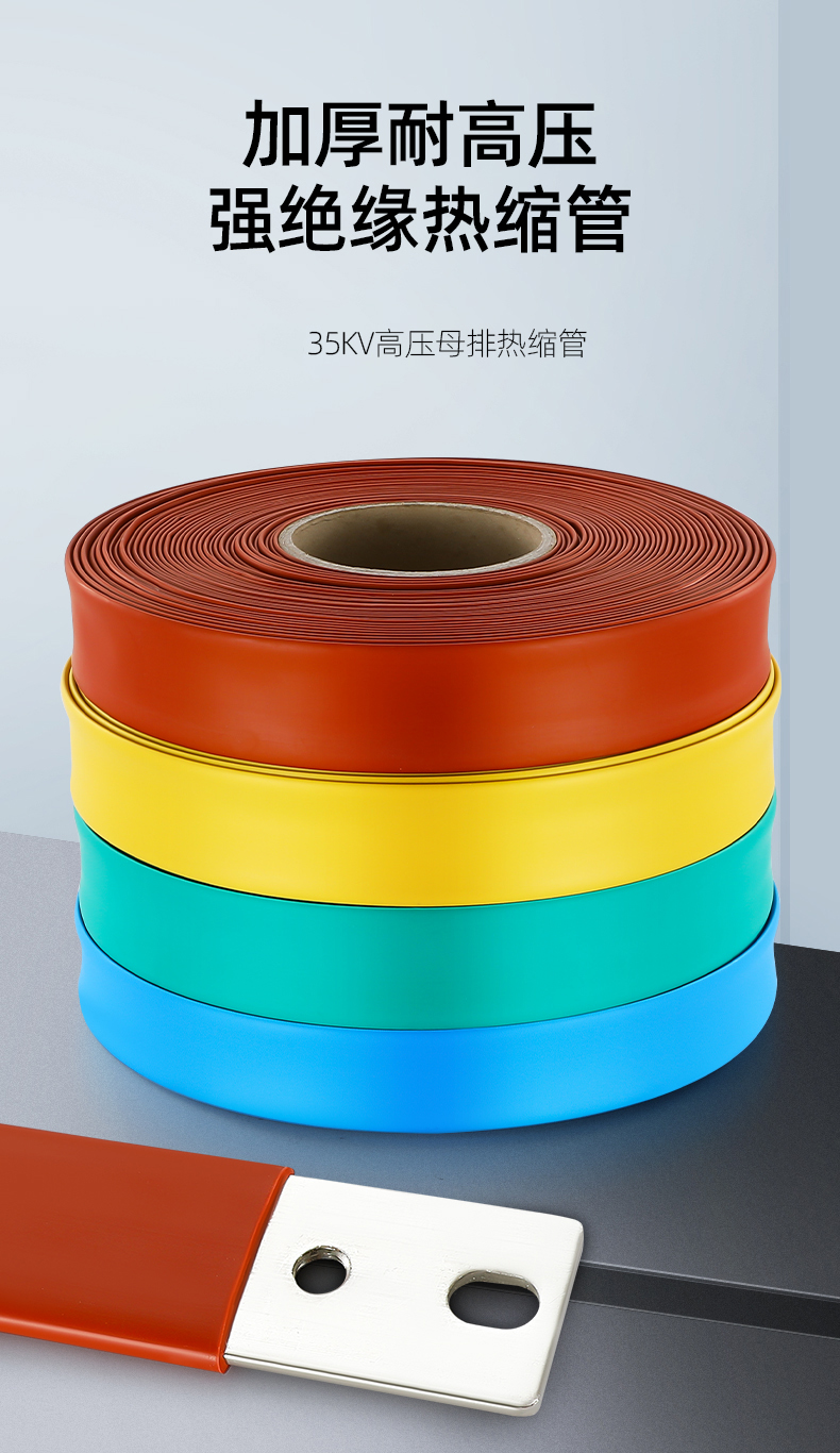 热缩绝缘套管采用特殊聚烯烃经过特殊加工而 成,具有极高的绝缘性能。热缩绝缘套管分为 1KV 低压,10KV 高压和 35KV 高压,热缩绝缘 套管用于变电站母线,高,低压开关柜母线的 绝缘防护,可以使开关柜的结构紧凑化 (相间距离缩短), 防止偶发性的短路事故。